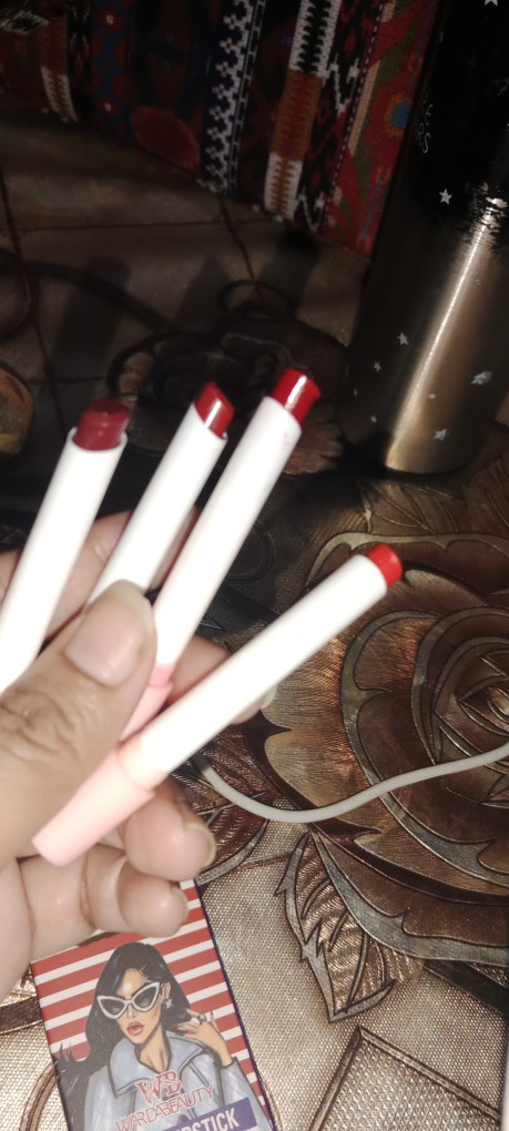 Uniquely designed lipstick tubes housed in a playful cigarette-style box—perfect for gifting or showing off your makeup flair. -